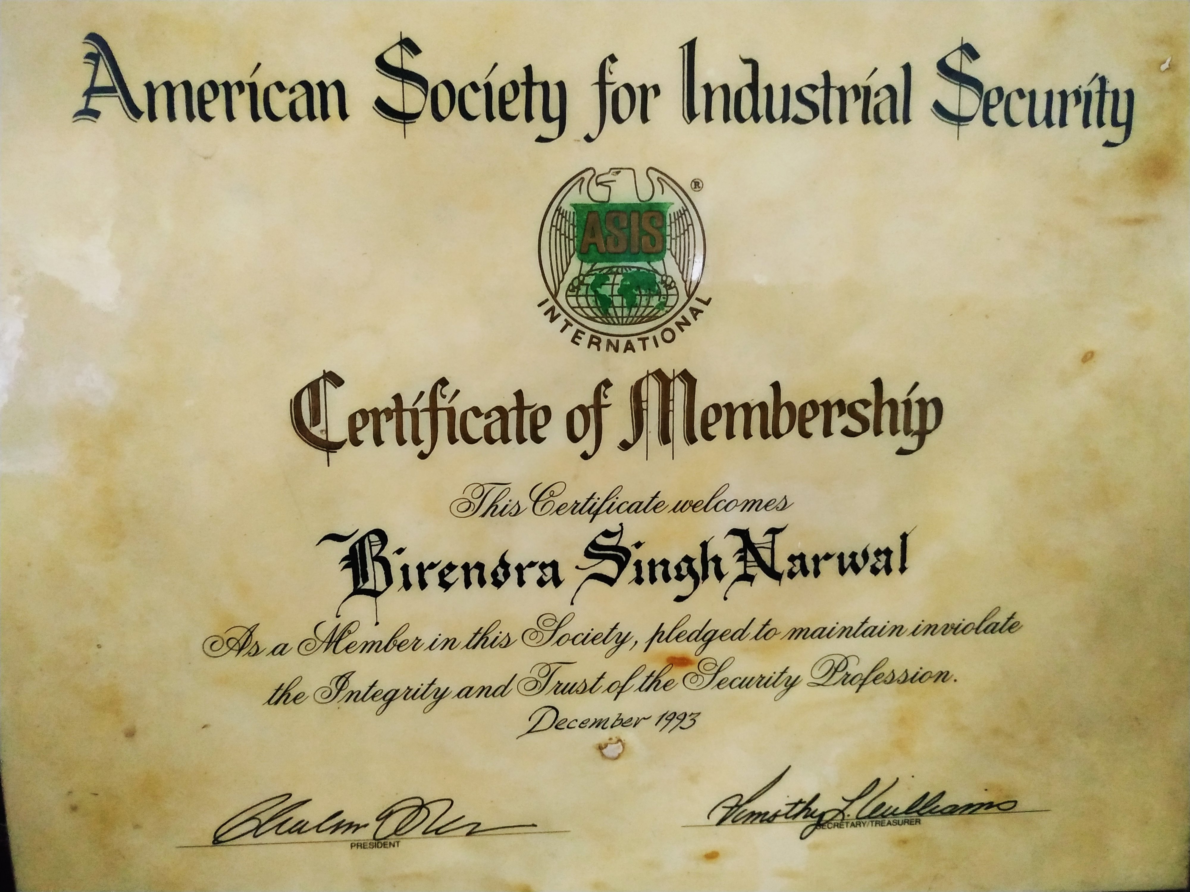 He served in the high altitude area in Leh & Laddakh in the capacity of O/C at military farm depot Leh. Mr. Narwal has been member of “American Society of Industrial Security” with head office in Arlington, USA. He has been dealing with strikes and labor unrest in India and abroad and is a consultant to many industries on security & safety matters.